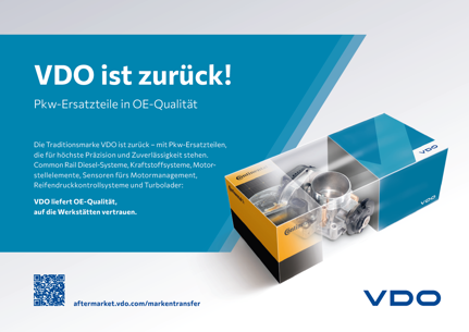 Im Zuge dieser Neuausrichtung feiert eine traditionsreiche Marke ihr Comeback: VDO kehrt zurück ins Ersatzteilgeschäft. Das gesamte Elektronik- und Mechatronik-Portfolio, das bislang unter der Marke Continental geführt wurde, wird künftig wieder unter dem Namen VDO angeboten – inklusive entsprechender Verpackung und Markenauftritt.